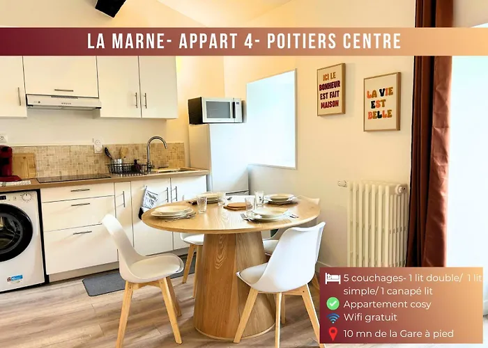 Das Apartment La Marne #11- Poitiers Centre Ville verfügt über eine voll ausgestattete Küchenzeile mit einem Wasserkocher, einem Kühlschrank und Glasgeschirr für Ihren Komfort. Die Unterkünfte ist ein paar Schritte entfernt von der Bushaltestelle Theatre et Auditorium de Poitiers.